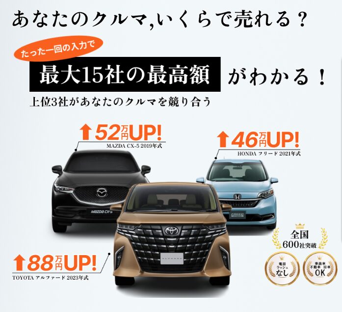 ◎ 最多15社の無料査定比較で“最高額”を目指せる