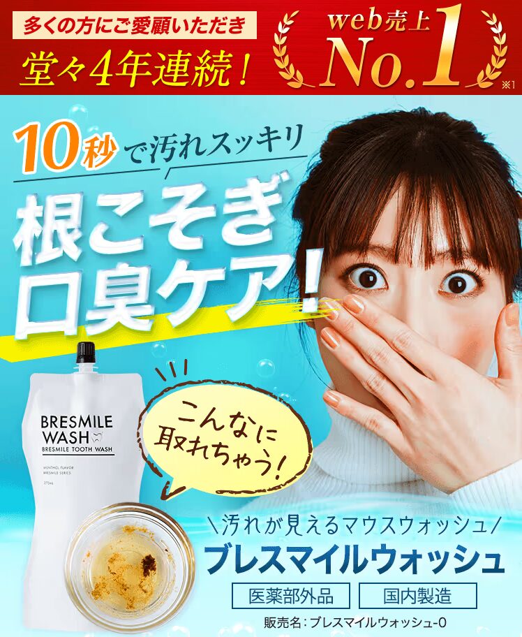 そこで注目されているのが、話題のマウスウォッシュ 「ブレスマイルウォッシュ(BRESMILE WASH)」。