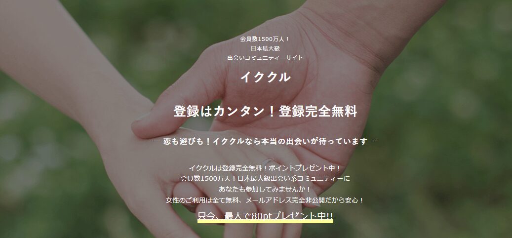 そんな中、**登録会員数1500万人を突破した日本最大級の出会いコミュニティサイト『イククル(イクヨクルヨ)』**が注目されています。